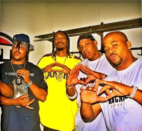 aintnojigga: Jay-Z, Tray Deee of Tha Eastsidaz, Snoop Dogg, and Dame Dash backstage during the HOT 97FM Summer Jam in 1999. April 12, 2013 Source: http://aintnojigga.tumblr.com/post/4386518...