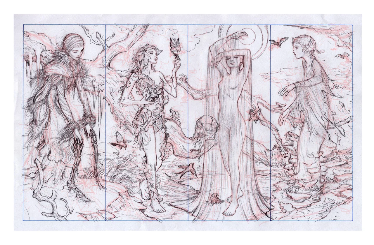 Seasons Sketch. Graphite and Pigment Ink on Paper, 11.5 x 7", 2014.
