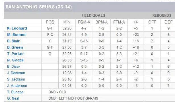 Tim Duncan - Did not play because of olds.