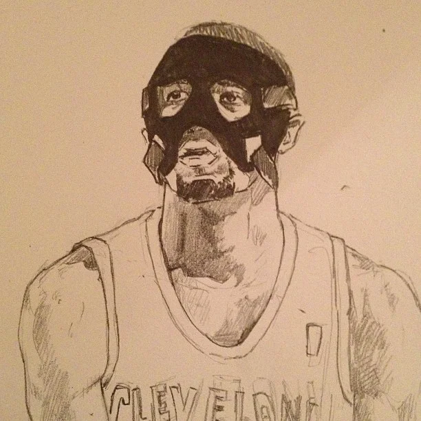 Masked man sketching