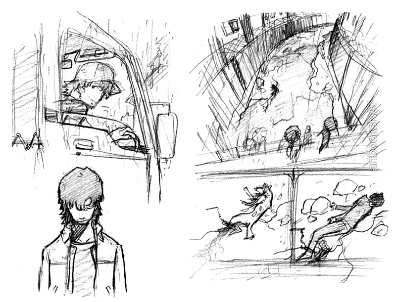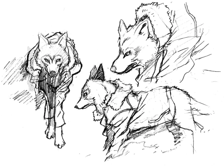 Concept art from Wolf Children (おおかみこどもの雨と雪) illustrated by character designer Yoshiyuki Sadamoto (貞本義行), who is also the artist behind the character designs for Evangelion, FLCL, Summer Wars and the Girl Who Leapt Through Time.