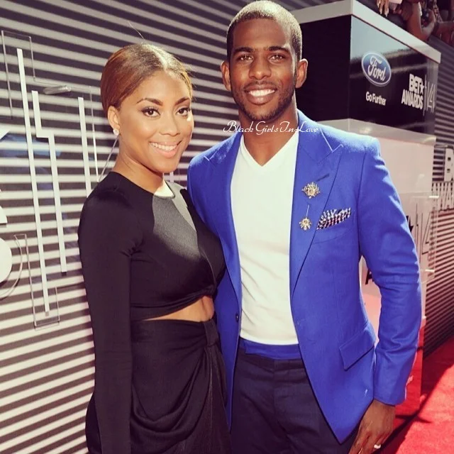 NBA player Chris Paul and his wife Jada Crawley. The two met in high school and became college sweethearts while attending Wake Forest University together. They now have two gorgeous children, Chris Jr. and Camryn.